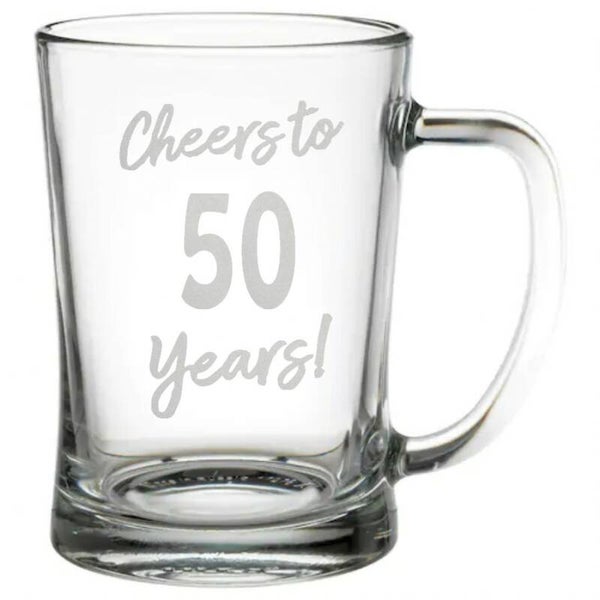 Abraham? Laat het de jarige weten dat hij 50 is geworden met deze leuke bierpul met de tekst "Cheers to 50 years!".